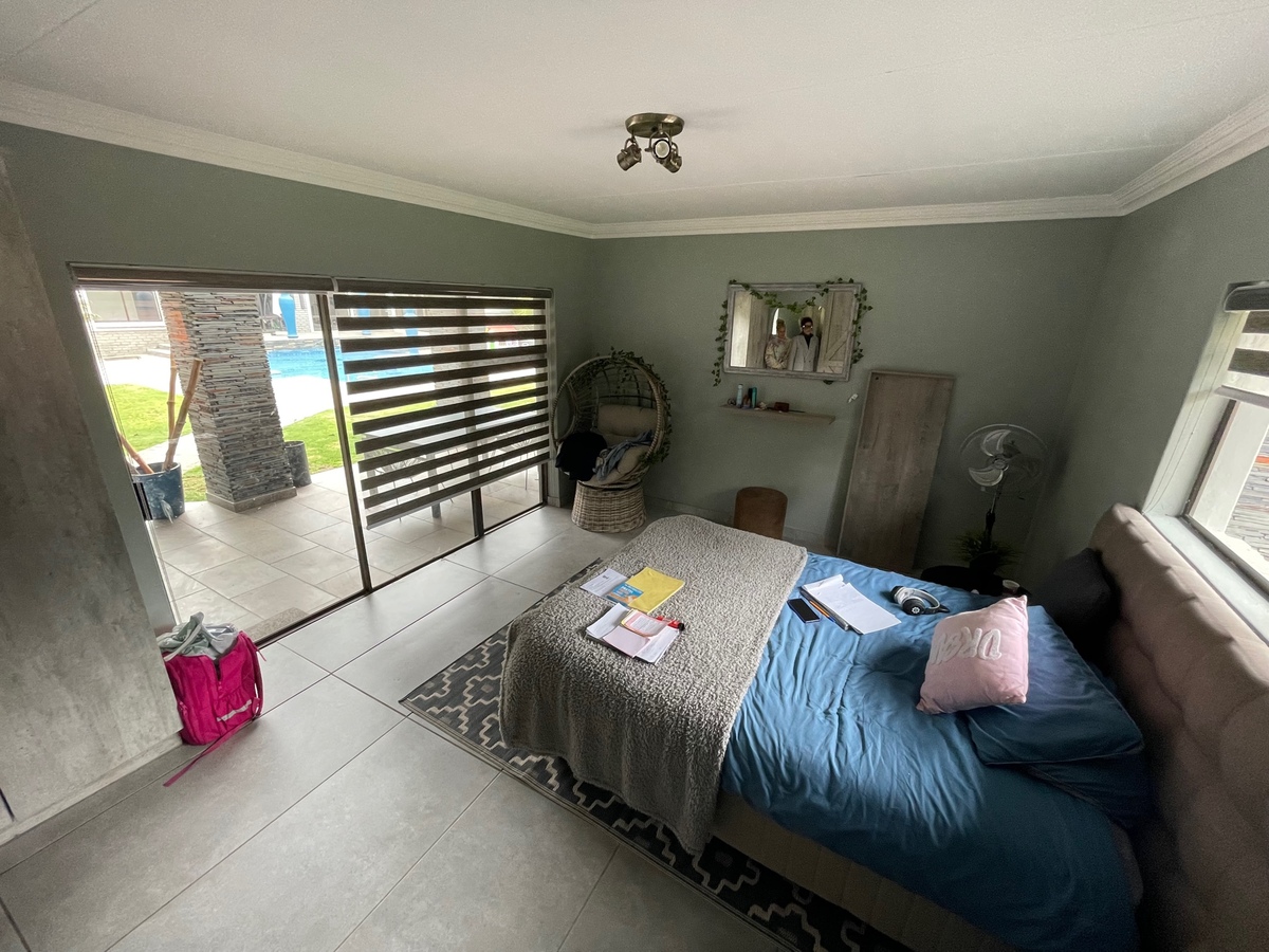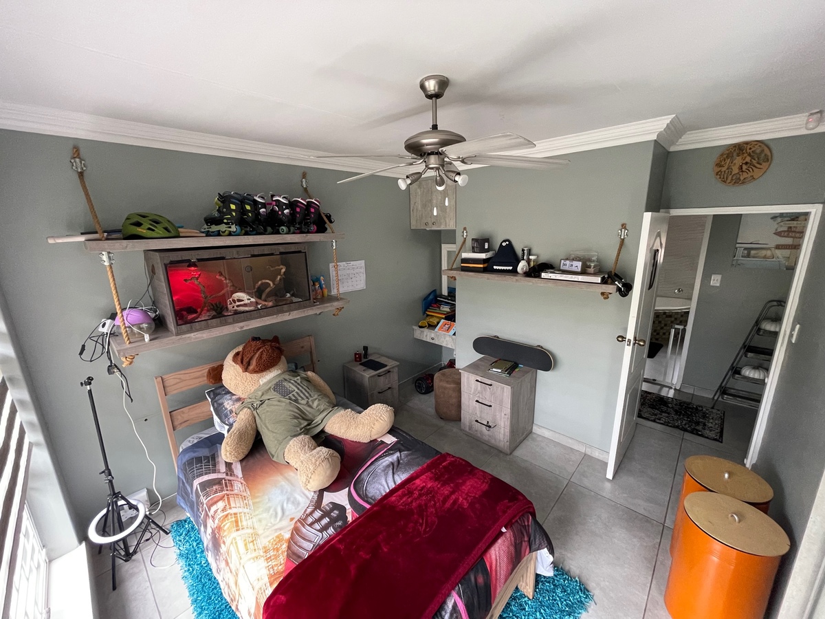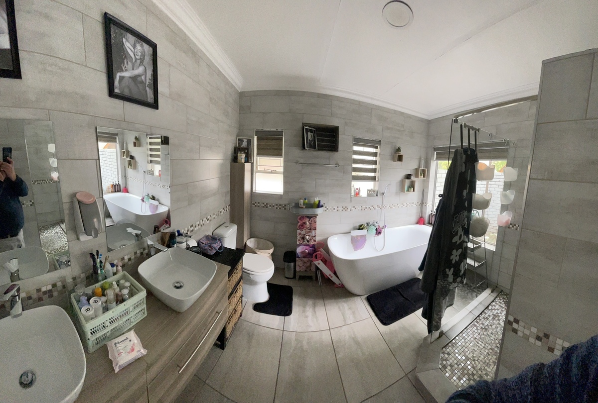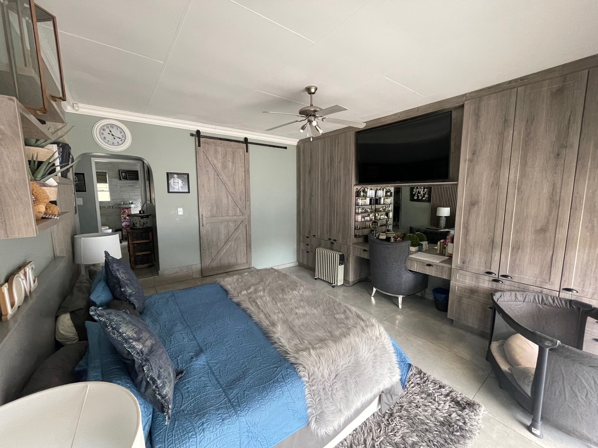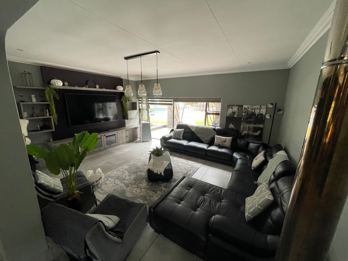 Not only is this a magnificent home but it is positioned on a 1750m² erf and features majestic landscaped garden with a borehole, sparkling heated swimming pool, jungle gym and built-in trampoline. The property is equipped with a 15KVA Generator to maintain a comfortable lifestyle during loadshedding.