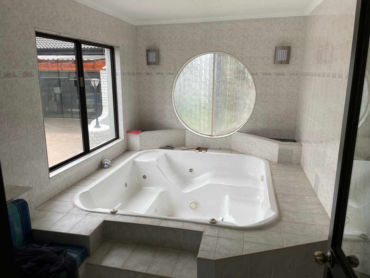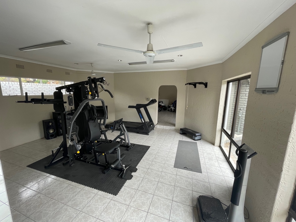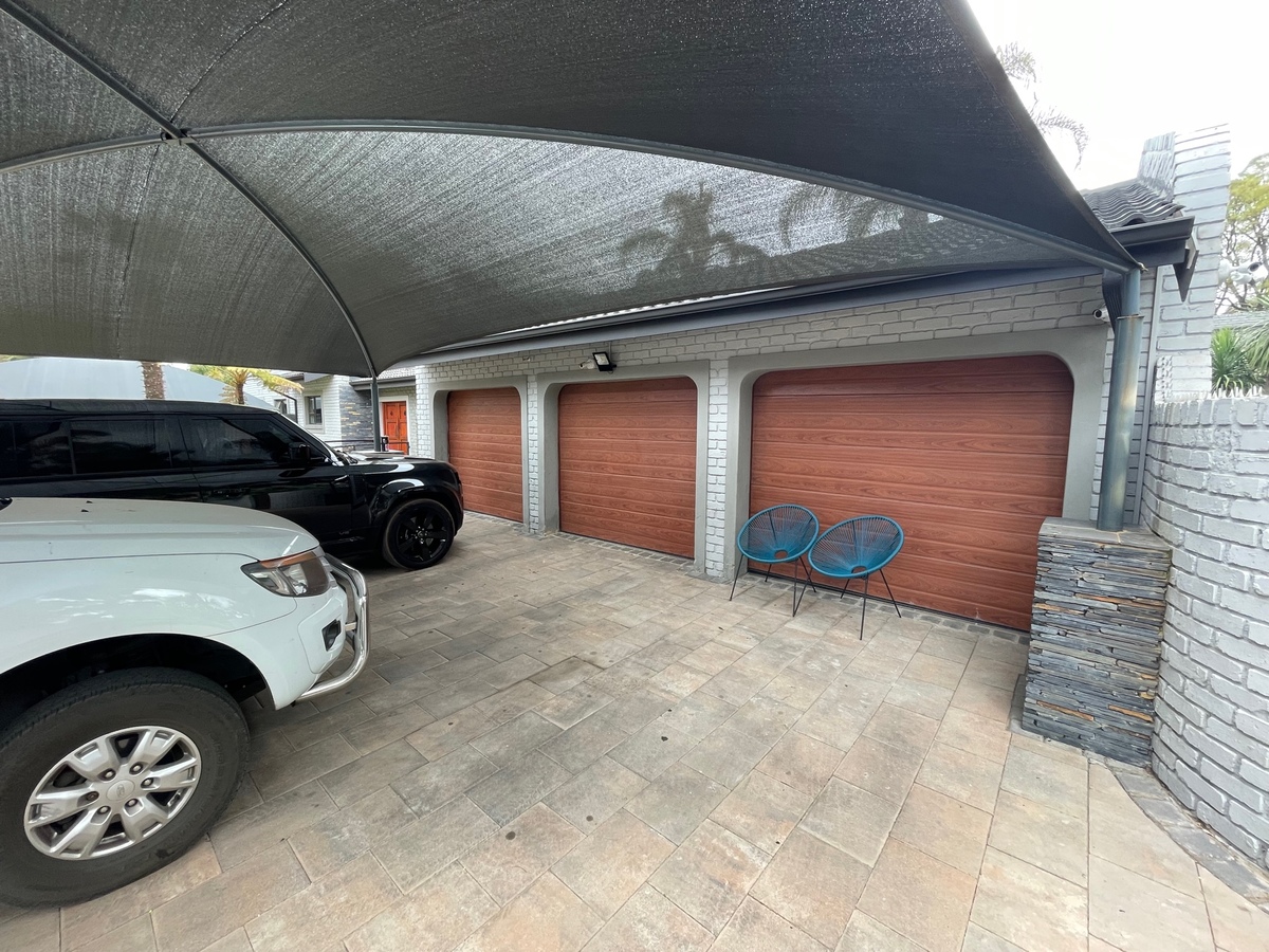 Generously sized bedrooms with 2 full modern bathrooms & guest toilet. Three automated garages with a separate storeroom and two huge carports that can accommodate 6 cars with ease. Further the home has a totally separate outbuilding with separate entrance that boasts a large sunny entertainment area with built-in braai, gym room with jacuzzi, sauna, shower room & separate bathroom that walks out onto the beautiful garden.